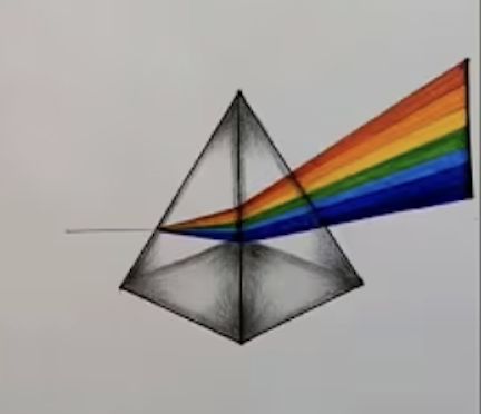 ... a piece of glass or other see-through material that has several flat sides called faces. Prisms can be made in many forms and shapes. Light travels in the form of waves. Some light waves have long wavelengths while others have short wavelengths. Each wavelength produces a different color of light. Usually, all the wavelengths of light blend together to form light, but when light enters a prism, it bends. Light waves of different wavelengths bend by different amounts. The longest wavelengths bend the least. The shortest wavelengths bend the most. This bending separates the light waves so each color can be seen. This band of colors - red, orange, yellow, green, blue, indigo, and violet - is called a spectrum.